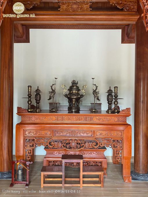 Gỗ gõ đỏ là một trong những loại gỗ tốt nhất cho đồ thờ, có màu sắc đẹp, vân gỗ sắc nét và độ bền cực cao. Gỗ này có khả năng chịu nhiệt tốt, nhưng lại không chống mối mọt bằng gỗ hương đá. Mặc dù vậy, gỗ gõ đỏ là sự lựa chọn hàng đầu cho những ai yêu thích sự bền vững, đẹp mắt.