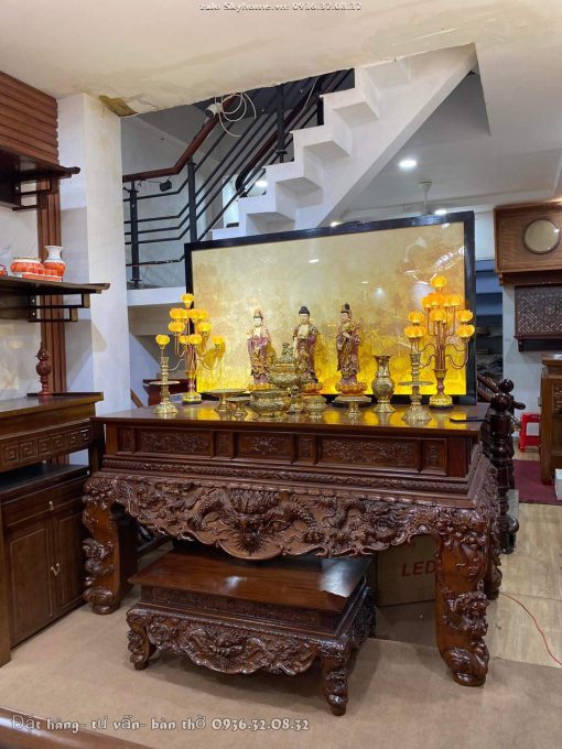 - Sập Thờ tứ linh gỗ hương Đá chân 24cm