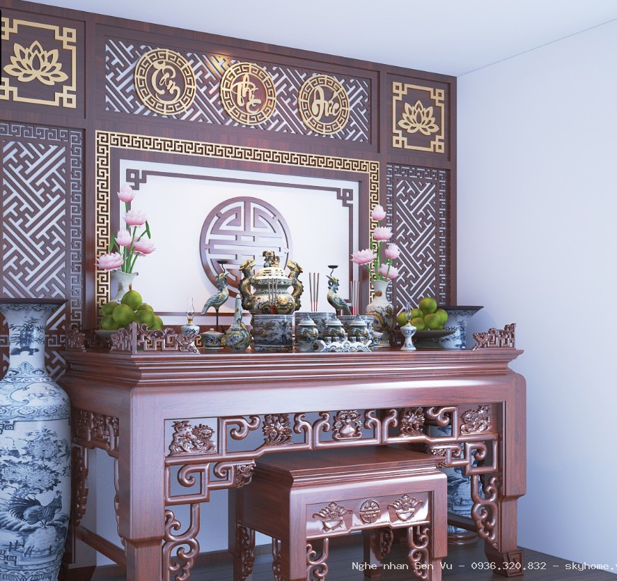 Bàn thờ gỗ hương đá mẫu chữ Phúc 2 ô kéo Được xếp hạng 5.00 5 sao tại Ba Đình