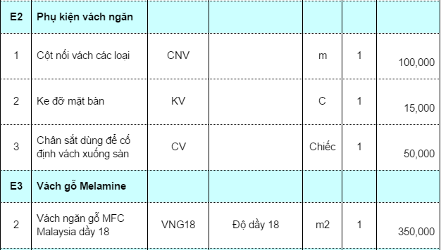 3. Báo giá phụ kiện vách ngăn