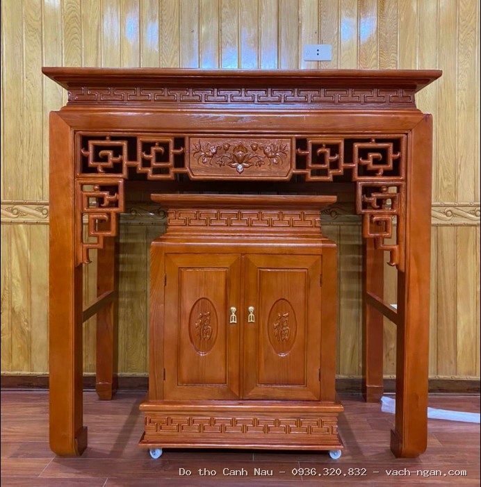 Mẫu bàn thờ này được thiết kế dựa trên cung số tốt, giúp gia chủ đón nhận sinh khí và tài lộc. Chúng tôi chuyên bàn thờ gỗ cao cấp, tuyệt đối không kinh doanh vách ngăn CNC.