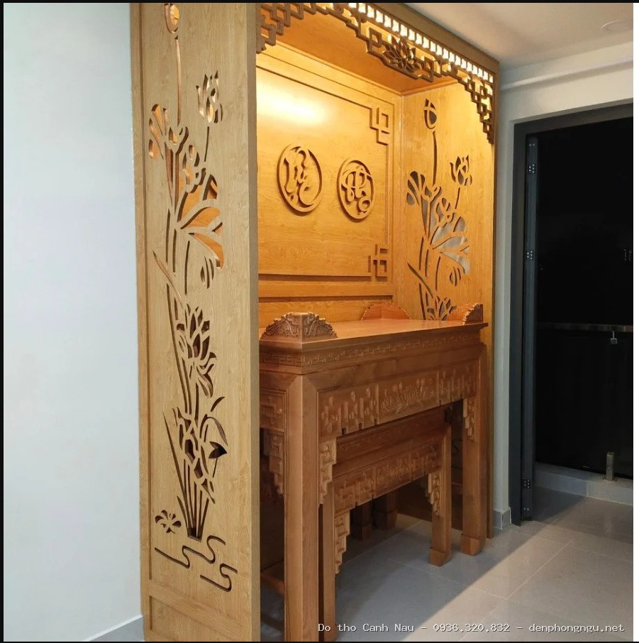 Mẫu bàn thờ này được thiết kế dựa trên cung số tốt, giúp gia chủ đón nhận sinh khí và tài lộc. Chúng tôi chuyên bàn thờ gỗ cao cấp, tuyệt đối không kinh doanh vách ngăn CNC.