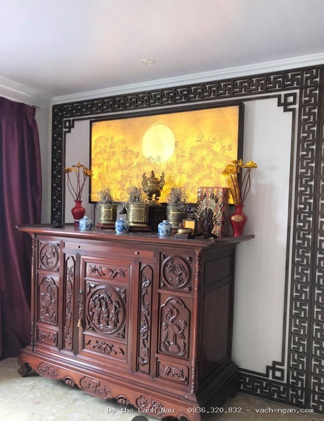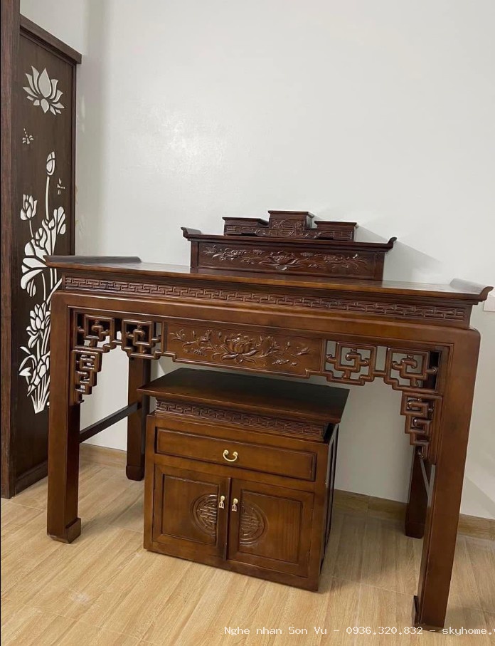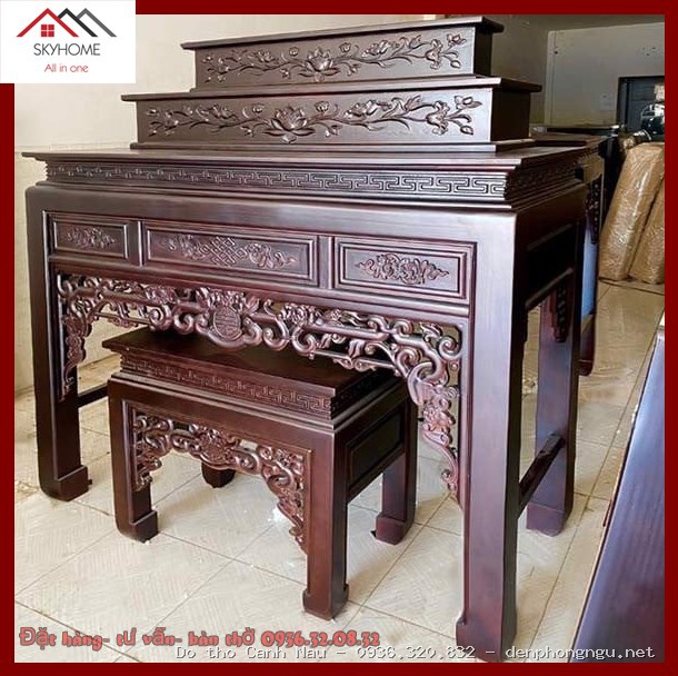 Bàn thờ đứng gỗ hương đá màu cánh gián mẫu Thanh Quý tại Hoàng Mai