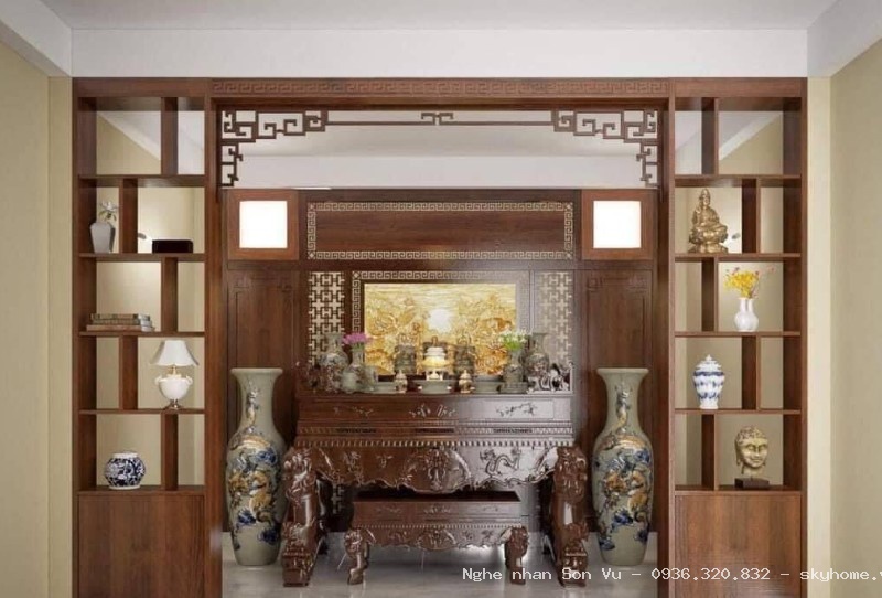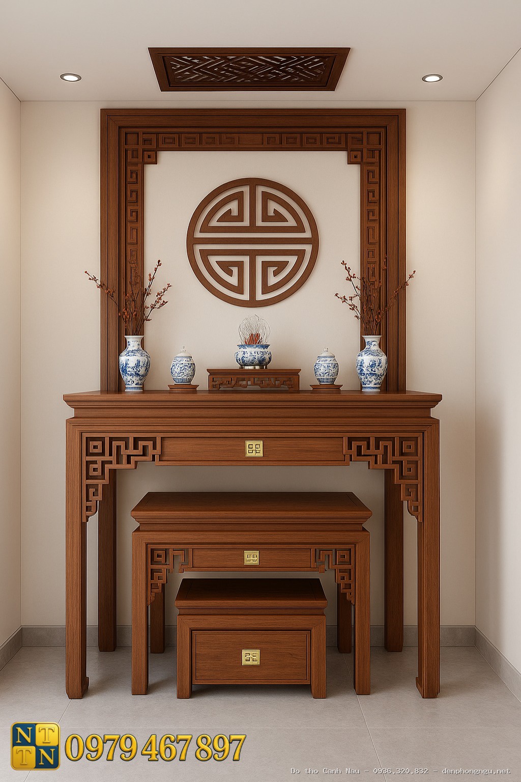 Mẫu bàn thờ này được thiết kế dựa trên cung số tốt, giúp gia chủ đón nhận sinh khí và tài lộc. Chúng tôi chuyên bàn thờ gỗ cao cấp, tuyệt đối không kinh doanh vách ngăn CNC.