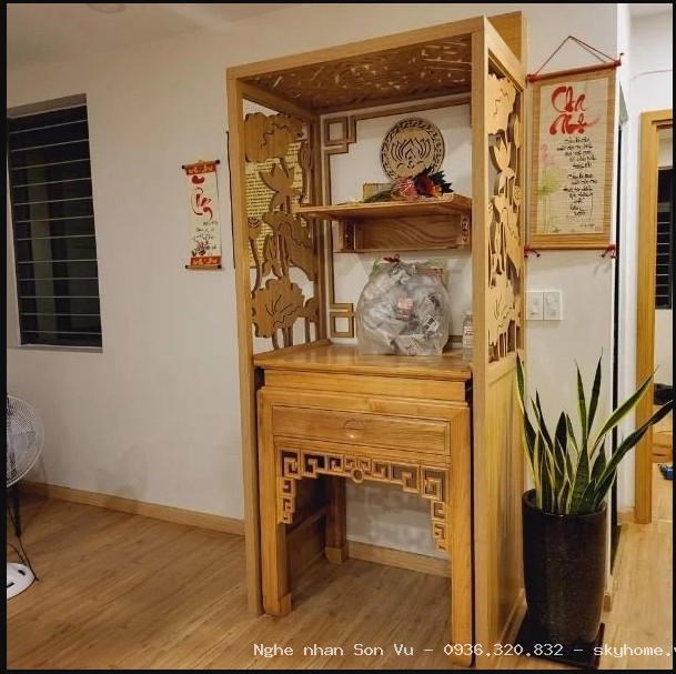 phòng thờ gỗ tự nhiên kết hợp hiện đại tại Nam Từ Liêm