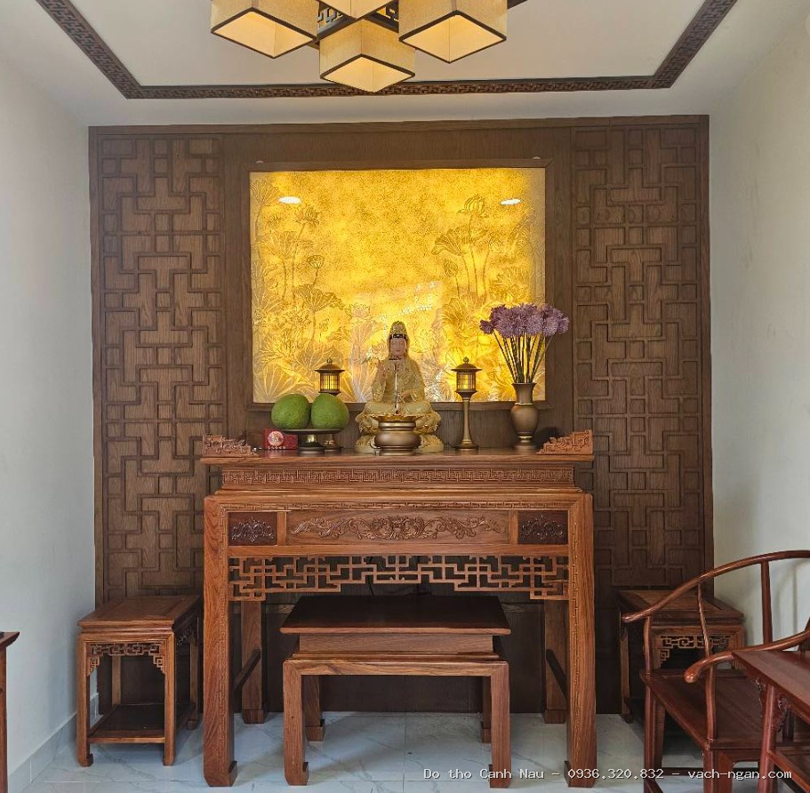 Mẫu bàn thờ này được thiết kế dựa trên cung số tốt, giúp gia chủ đón nhận sinh khí và tài lộc. Chúng tôi chuyên bàn thờ gỗ cao cấp, tuyệt đối không kinh doanh vách ngăn CNC.