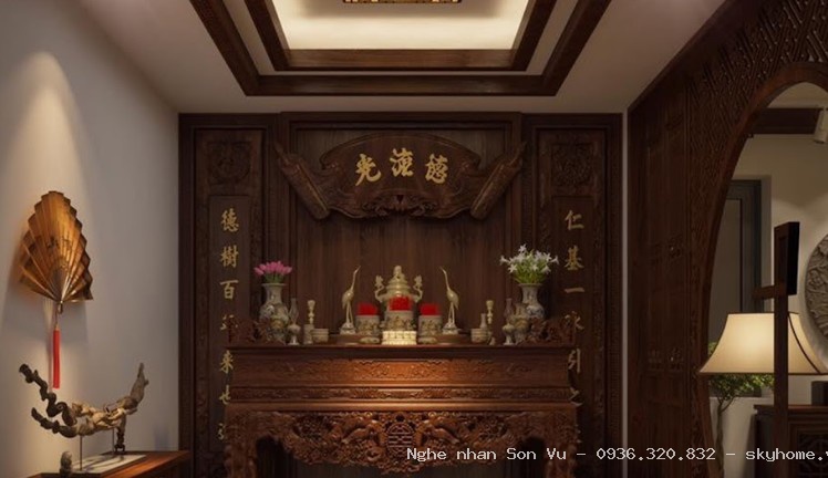 Mẫu bàn thờ này được thiết kế dựa trên cung số tốt, giúp gia chủ đón nhận sinh khí và tài lộc. Chúng tôi chuyên bàn thờ gỗ cao cấp, tuyệt đối không kinh doanh vách ngăn CNC.