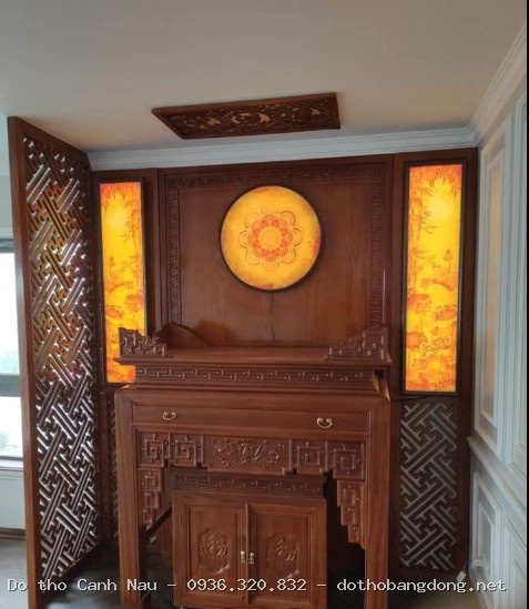 Mẫu bàn thờ này được thiết kế dựa trên cung số tốt, giúp gia chủ đón nhận sinh khí và tài lộc. Chúng tôi chuyên bàn thờ gỗ cao cấp, tuyệt đối không kinh doanh vách ngăn CNC.