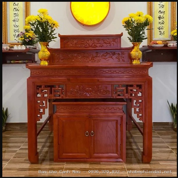 Mẫu bàn thờ này được thiết kế dựa trên cung số tốt, giúp gia chủ đón nhận sinh khí và tài lộc. Chúng tôi chuyên bàn thờ gỗ cao cấp, tuyệt đối không kinh doanh vách ngăn CNC.