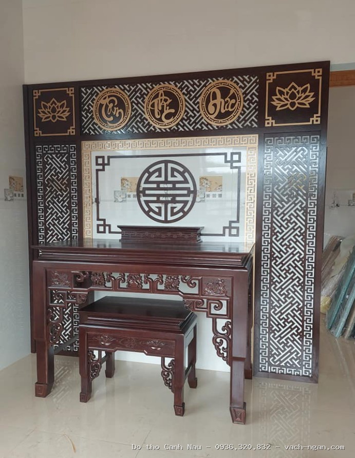 Mẫu bàn thờ này được thiết kế dựa trên cung số tốt, giúp gia chủ đón nhận sinh khí và tài lộc. Chúng tôi chuyên bàn thờ gỗ cao cấp, tuyệt đối không kinh doanh vách ngăn CNC.