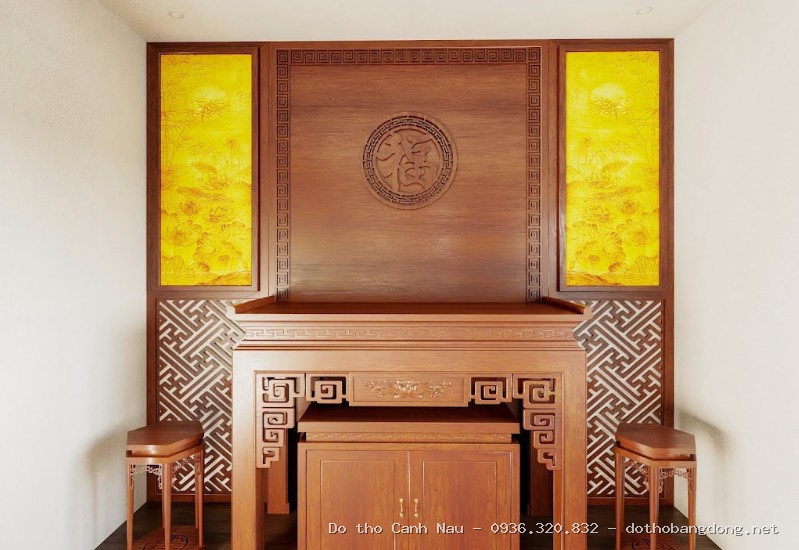 Mẫu bàn thờ này được thiết kế dựa trên cung số tốt, giúp gia chủ đón nhận sinh khí và tài lộc. Chúng tôi chuyên bàn thờ gỗ cao cấp, tuyệt đối không kinh doanh vách ngăn CNC.