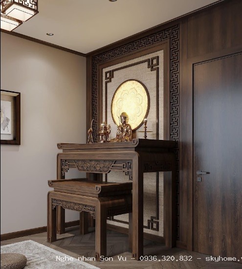Mẫu bàn thờ này được thiết kế dựa trên cung số tốt, giúp gia chủ đón nhận sinh khí và tài lộc. Chúng tôi chuyên bàn thờ gỗ cao cấp, tuyệt đối không kinh doanh vách ngăn CNC.