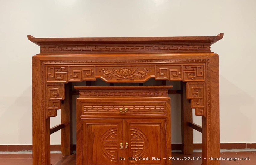 Mẫu bàn thờ này được thiết kế dựa trên cung số tốt, giúp gia chủ đón nhận sinh khí và tài lộc. Chúng tôi chuyên bàn thờ gỗ cao cấp, tuyệt đối không kinh doanh vách ngăn CNC.