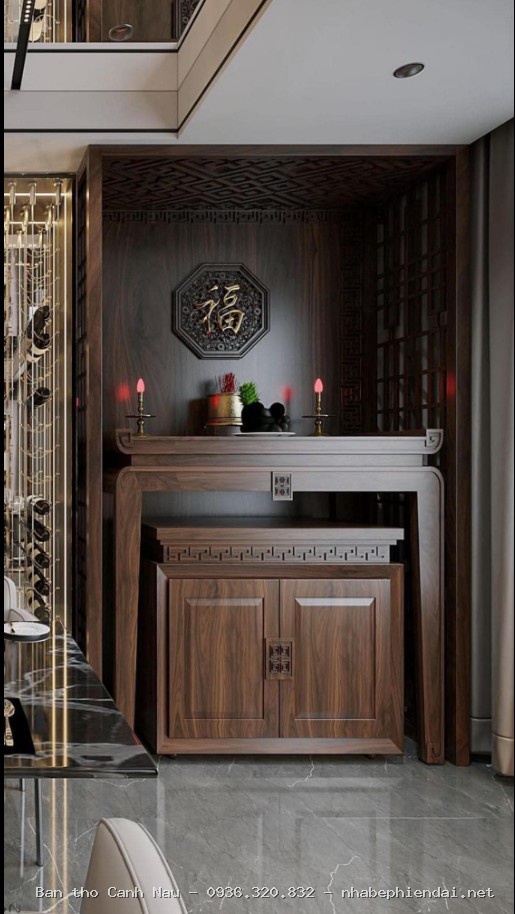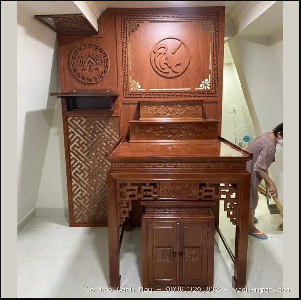 Mẫu bàn thờ này được thiết kế dựa trên cung số tốt, giúp gia chủ đón nhận sinh khí và tài lộc. Chúng tôi chuyên bàn thờ gỗ cao cấp, tuyệt đối không kinh doanh vách ngăn CNC.