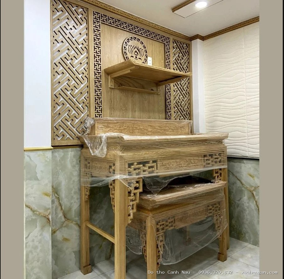 Mẫu bàn thờ này được thiết kế dựa trên cung số tốt, giúp gia chủ đón nhận sinh khí và tài lộc. Chúng tôi chuyên bàn thờ gỗ cao cấp, tuyệt đối không kinh doanh vách ngăn CNC.