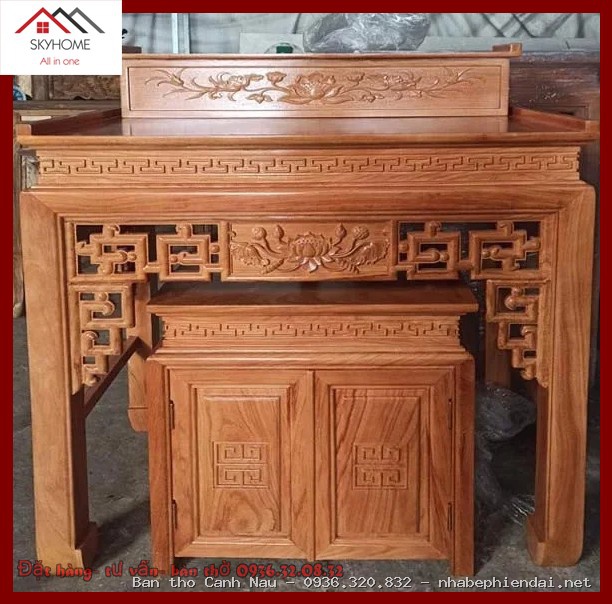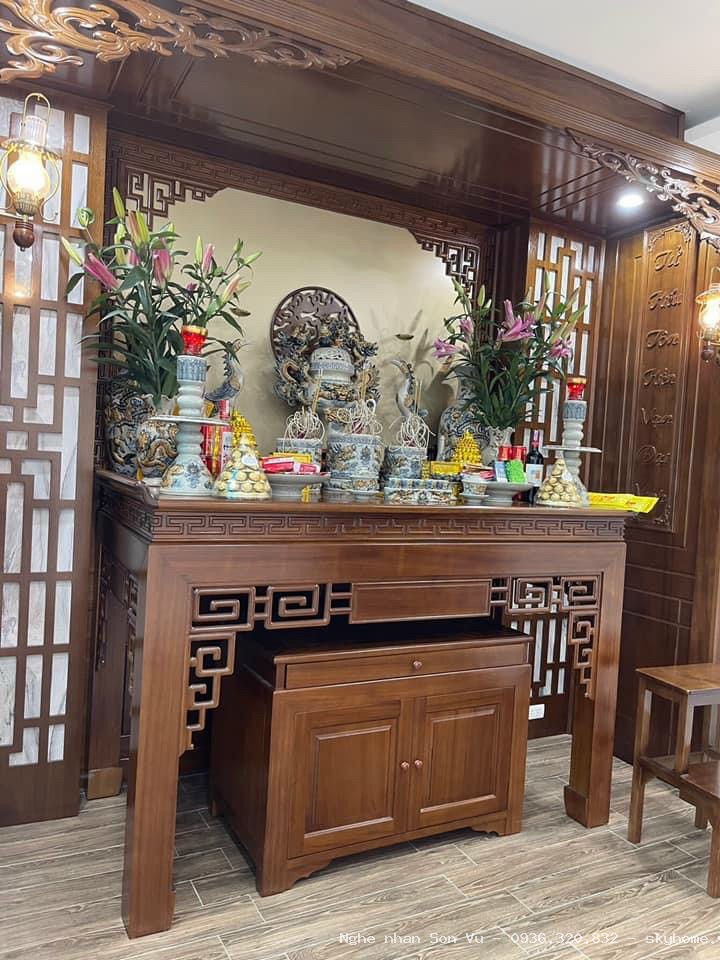 Mẫu bàn thờ này được thiết kế dựa trên cung số tốt, giúp gia chủ đón nhận sinh khí và tài lộc. Chúng tôi chuyên bàn thờ gỗ cao cấp, tuyệt đối không kinh doanh vách ngăn CNC.