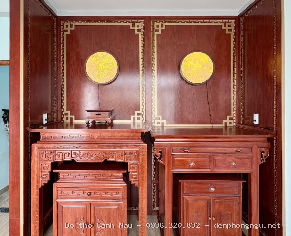 Mẫu bàn thờ này được thiết kế dựa trên cung số tốt, giúp gia chủ đón nhận sinh khí và tài lộc. Chúng tôi chuyên bàn thờ gỗ cao cấp, tuyệt đối không kinh doanh vách ngăn CNC.