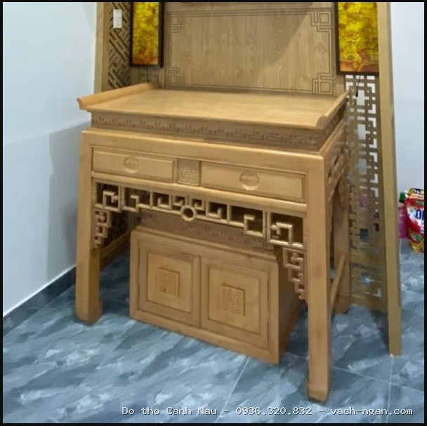 Mẫu bàn thờ này được thiết kế dựa trên cung số tốt, giúp gia chủ đón nhận sinh khí và tài lộc. Chúng tôi chuyên bàn thờ gỗ cao cấp, tuyệt đối không kinh doanh vách ngăn CNC.