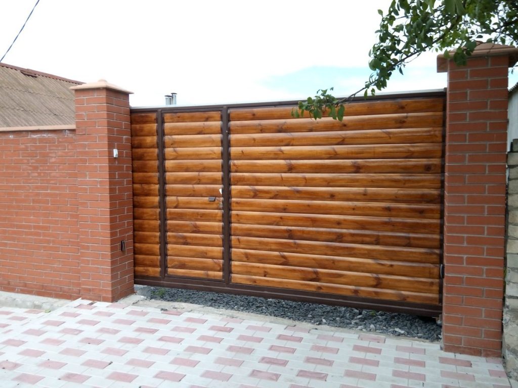 Cổng gỗ nâu đơn giản đẹp mắt (skyhome.vn)