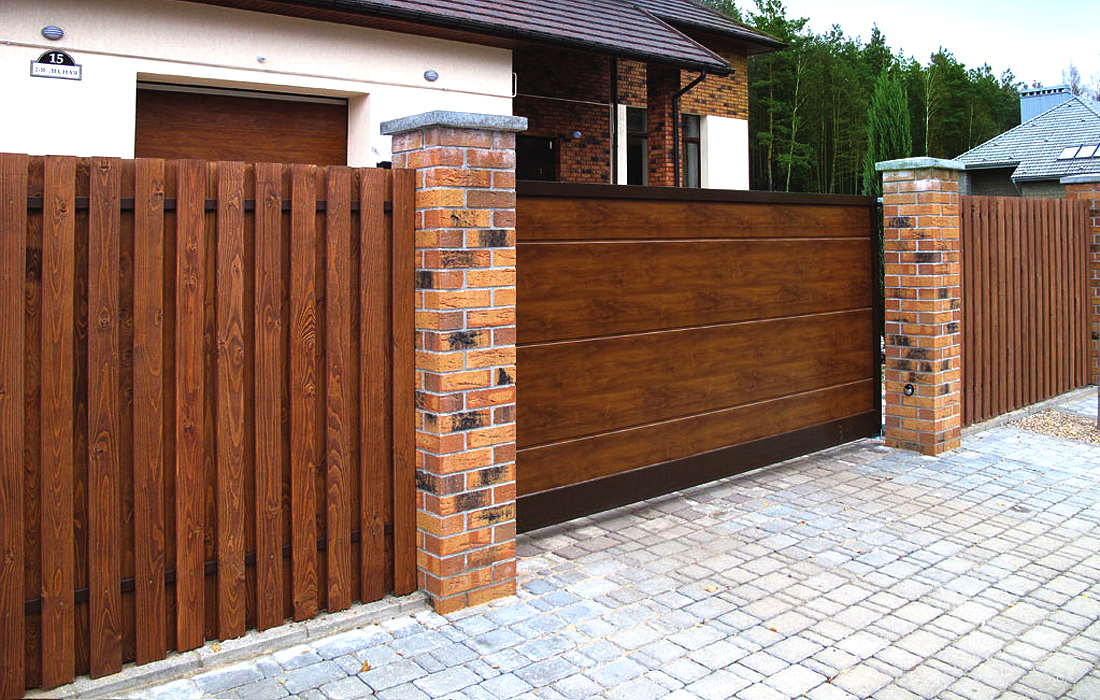 Cổng gỗ có thể kết hợp các bộ điều khiển (skyhome.vn)