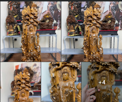 - Tượng gỗ Quan Âm Tự Tại ( có xông trầm) Gỗ bách xanh mộc châu thơm