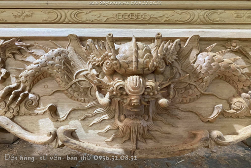 - bao đơn đục tay-Góc sập thờ chạm rồng-bộ bàn thờ tứ linh 6 ( ảnh Skyhome)