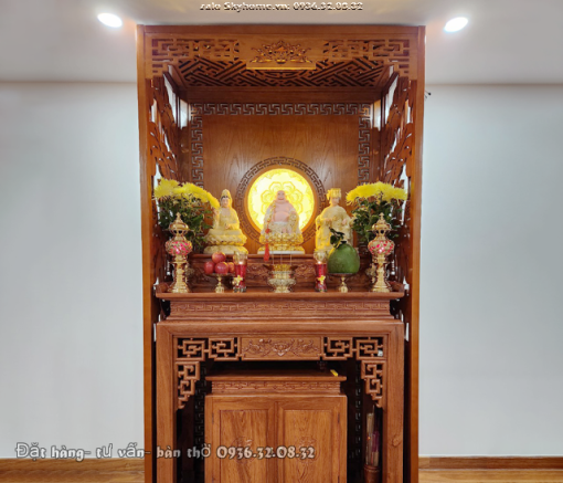 – Nhà ống: đặt trên tầng cao, phòng riêng, tránh phòng khách tầng trệt. – Chung cư: thường dùng bàn thờ treo hoặc tủ thờ nhỏ ở phòng khách, có vách ngăn để giữ riêng tư. |