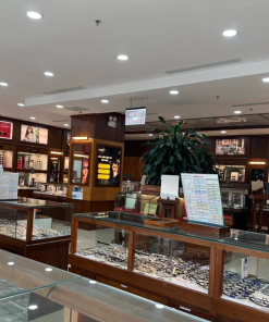 Skyhome cũng tư vấn thay sàn xi măng bằng sàn gỗ công nghiệp, mang lại cảm giác ấm áp, gần gũi cho khách hàng. Thiết kế này phù hợp nhóm khách Gen Z yêu thích sự tối giản, thời thượng, đồng thời đảm bảo trải nghiệm mua sắm thuận tiện và tăng khả năng trưng bày sản phẩm.