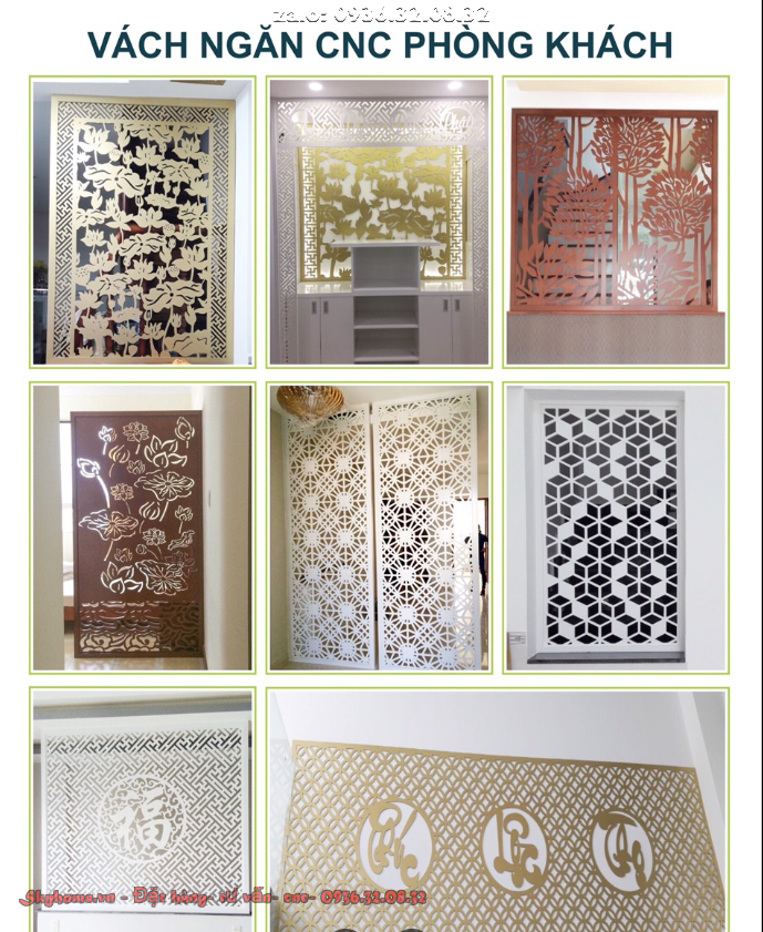 Mẫu vách ngăn CNC đẹp thường thay đổi liên tục theo thời gian. Vì vậy, chúng tôi luôn cập nhật những mẫu vách ngăn mới nhất để gửi đến quý khách hàng. Hiện nay, nhiều khách hàng yêu cầu tích hợp vách ngăn CNC thành vách ngăn di động, nhằm vừa trang trí vừa tối ưu hóa không gian trong căn phòng. SKYHOME nhận thiết kế và thi công tất cả các loại vách ngăn theo yêu cầu của khách hàng. Nếu bạn có nhu cầu, xin vui lòng liên hệ với chúng tôi để được hỗ trợ và tư vấn tốt nhất!