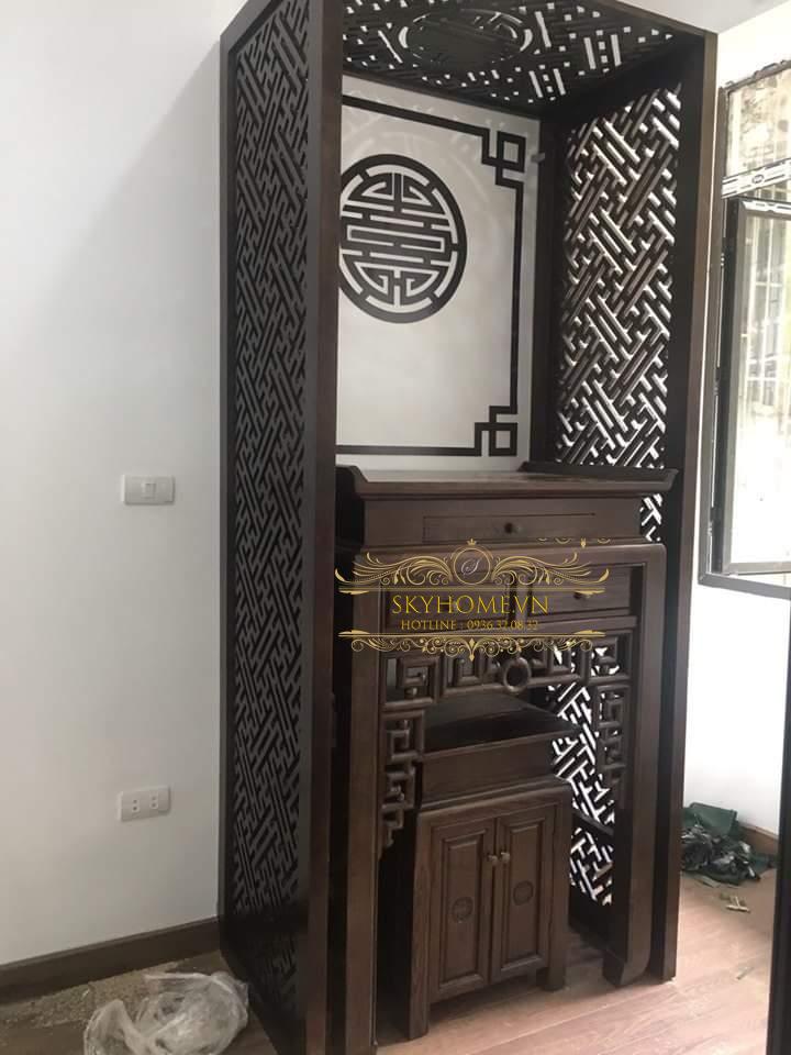 Vách ngăn phòng thờ bằng gỗ vừa dùng để ngăn cách không gian mà còn tạo ra một phòng thờ riêng biệt vừa ấm áp và vừa sang trọng. Ngày nay nhiều chung cư, nhiều nhà dân việc mua bàn thờ, tủ thờ là điều tất yếu và chính vì thế vách ngăn phòng thờ bằng gỗ cũng là thứ tất yếu trong mỗi phòng thờ.